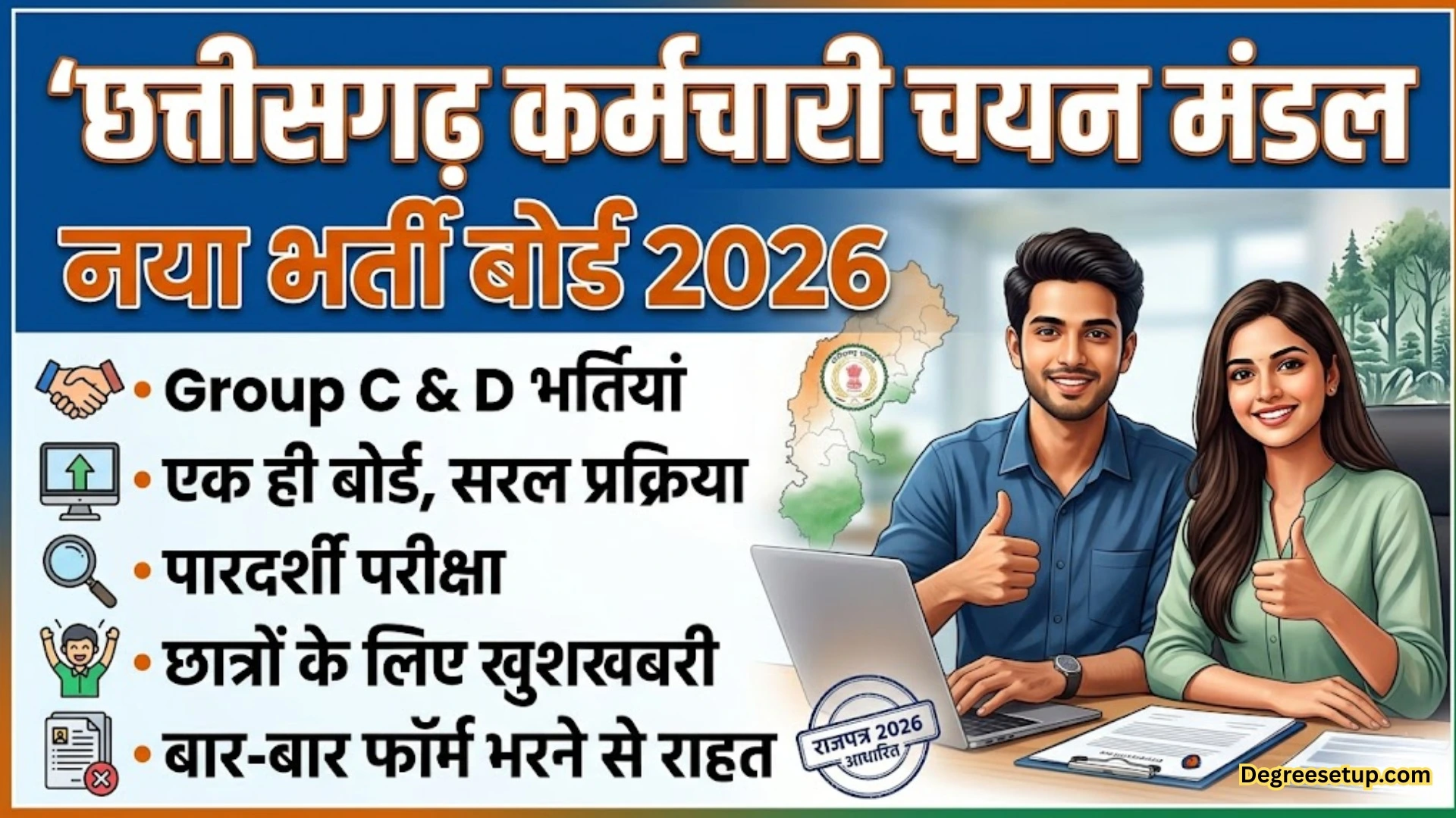 इसके लिए सरकार ने “छत्तीसगढ़ कर्मचारी चयन मंडल विधेयक 2026” पास कर दिया है, जिसे 18 मार्च 2026 को राजपत्र में प्रकाशित भी कर दिया गया है।